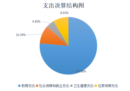 2021年凉水镇中心小学校支出合计979.97万元,其中:教育支出748.51万元,占76.38%;社会保障和就业支出101.85万元,占10.39%;卫生健康支出45.12万元,占4.60%;住房保障支出84.48万元,占8.63%。