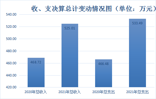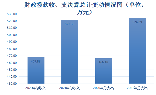 2021年青川县竹园初级中学校收入总计525.01万元,支出总计533.49万元。与2020年相比,收入总计增加56.29万元、支出增加67.01万元。总收入变动的主要原因为:一是一般公共预算财政拨款收入增加了53.47万元,主要原因为教职工较2020年相比增加了1人,退休人员一次性生活补助标准调整;二是其他收入增加2.82万元,主要为其他单位给的学生活动赞助费增加。总支出变动的主要原因为:一是教育支出增加64.49万元,主要支出为补发以前年度奖金、退休人员一次性补助、职工晋级工资调整等;二是社会保障和就业支出减少9.01万元,主要为2020年度有职业年金记实,而2021年度无本项支出;三是卫生健康支出增加1.64万元,主要为职工人数较去年增加1人;四是住房保障支出增加9.89万元,主要为将发放的人员奖金纳入住房公积金缴存基数。