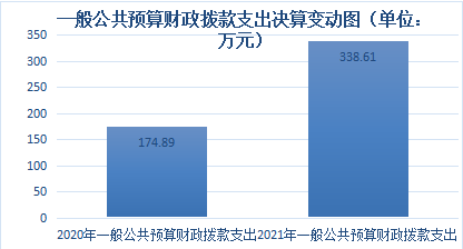 青川县竹园镇幼儿园2021年度一般公共预算财政拨款支出338.61万元,占本年支出合计的75.42%。与2020年相比,一般公共预算财政拨款支出增加163.72万元,增长93.61%,主要变动原因为拨付以前年度人员资金及项目资金。