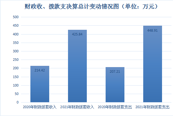 青川县竹园镇幼儿园2021年财政拨款收入总计425.84万元、支出总计448.91万元。与2020年相比,财政拨款收入增加132.37万元,上升72.26%;财政拨款支出增加241.7万元,增长7.45%,以上主要变动原因:一是项目资金拨款增加;二是2021年拨付以前年度人员资金增加。