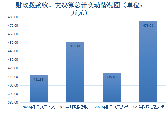 青川县尚品幼儿园2021年财政拨款收入总计451.18万元、支出总计475.08万元。与2020年相比,财政拨款收入增加111.62万元,增长32.87%;财政拨款支出增加141.45万元,增长42.40%,以上主要变动原因:一是2021年教职工人数较2020年增加了4人导致财政拨款收入增加;二是2021年拨付以前年度人员资金及项目资金导致财政拨款支出增加。