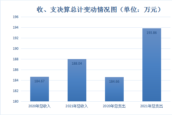 2021年青川县乔庄镇瓦砾小学收入总计188.04万元,支出总计193.86万元。与2020年相比,收入总计增加3.37万元、支出增加9.2万元。总收入变动的主要原因为:一是一般公共预算财政拨款收入增加了1.44万元,主要原因为收取上一年公用经费;二是事业收入增加了1.68万元,主要为收取锅炉处置费用;三是其他收入增加了0.25万元,主要为收取2019-2020年教学质量检测扣除费用。总支出变动的主要原因为:一是教育支出增加3.81万元,主要支出为补发以前年度年度奖金、退休人员一次性补助、职工晋级工资调整以及项目资金等;二是社会保障和就业支出增加0.53万元,主要为补缴2015年特岗断保费用;三是卫生健康支出增加0.86万元,主要为部分教师预算缴费基数未达到医保缴费基数;四是住房保障支出增加4万元,主要为将发放的人员奖金纳入住房公积金缴存基数。