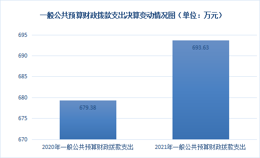2021年一般公共预算财政拨款支出693.63万元,占本年支出合计的99.79%。与2020年相比,一般公共预算财政拨款支出增加14.25万元,增长2.09%。主要变动原因是拨付以前年度人员资金及保险缴费基数调整。