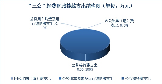 因公出国(境)费支出决算0.00万元,占0.00%;公务用车购置及运行维护费支出决算0.00万元,占0.00%;公务接待费支出决算0.36万元,占100%。具体情况如下: