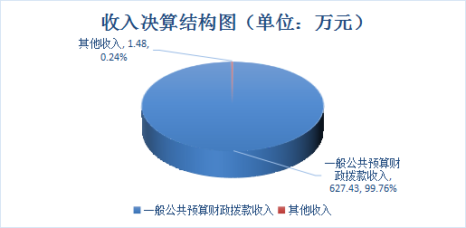 2021年本年收入合计628.91万元,其中:一般公共预算财政拨款收入627.43万元,占99.76%;其他收入1.48万元,占0.24%。
