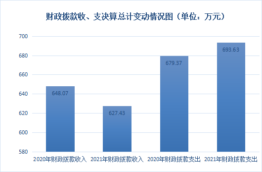 2021年财政拨款收入总计627.43万元,支出总计693.63万元。与2020年相比,财政拨款收入总计减少20.64万元,下降3.18%。财政拨款支出总计减少14.26万元,下降2.10%。主要原因是2021年较2020年教职工人数减少。