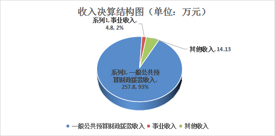 2021年本年收入合计276.73万元,其中:一般公共预算财政拨款收入257.8万元,占93.16%;事业收入4.8万元,占1.73%;其他收入14.13万元,占5.11%。