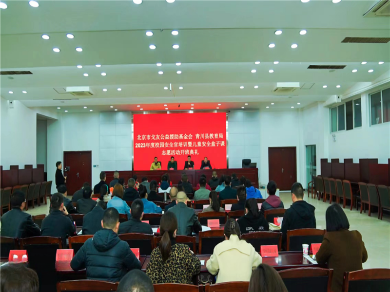 3月15日,2023年度校园安全官培训暨儿童安全盒子课志愿活动开班典礼在县教育局二楼会议室隆重举行,北京市戈友公益援助基金会秘书长黄毅、县委教育工委委员黄勇出席活动,北京市戈友公益援助基金会的爱心人士、县教育局相关人员、全县55所学校分管安全的副校长、负责学校安全工作的老师参加了开班典礼。
