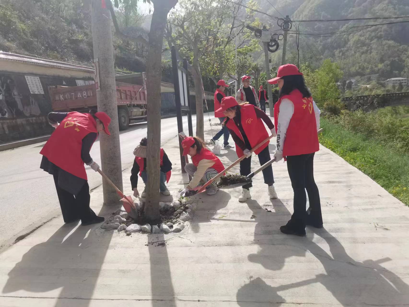 4月10日,七佛乡妇联组织贡茶社区巾帼志愿者穿上志愿者衣服,自带锄头、扫把、铲子等工具,在七佛乡场镇主干道沿线种植花草、清杂去乱,形成乡村道路靓丽的风景线。