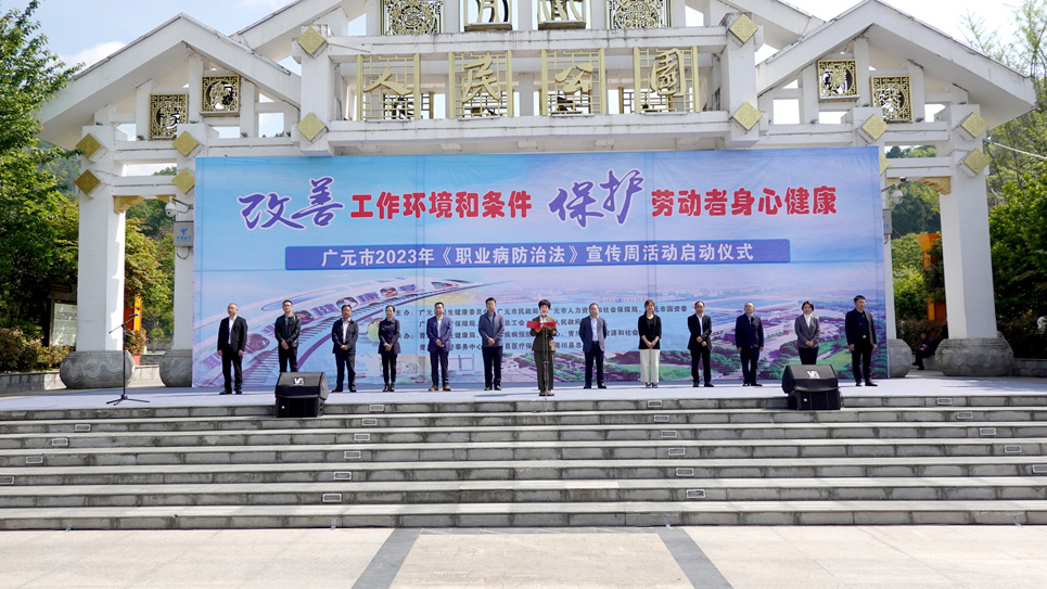 仪式上,刘素英肯定了我市职业病防治与职业健康工作近年来取得的成绩,但也坦言仍然存在一些困难和问题,各地各部门要紧紧围绕“改善工作环境和条件,保护劳动者身心健康”主题,全面学习贯彻《中华人民共和国职业病防治法》,为职业健康工作打好坚实的社会基础。她要求,要凝聚力量、齐心协力、开拓创新,全面推进职业病防治工作,为加快把广元建成川陕甘结合部现代化中心城市而贡献力量。随之,刘素英宣布广元市2023年度《中华人民共和国职业病防治法》宣传周活动正式启动。