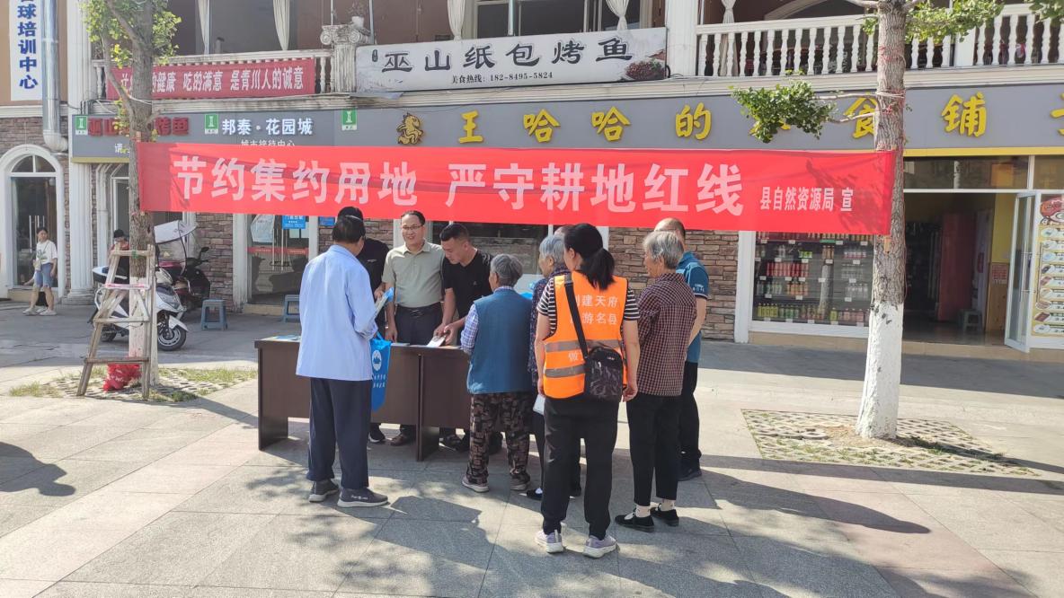 为宣传我国土地资源国情国策、耕地保护制度和节约集约用地制度,切实加强自然资源的合理规划和保护利用,营造浓厚的节约集约用地和依法保护耕地工作氛围,2023年6月25日,青川县自然资源局开展了以“节约集约用地 严守耕地红线”为主题的第33个全国土地日宣传活动。