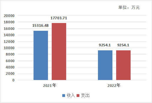 2022年度收入总计9,254.1万元。与2021年相比收入总计减少6,062.38万元,下降39.58%。2022年总支出9,254.1万元,比上年度减少8,449.61万元,同比下降47.73%,主要变动原因是年中调整预算数。