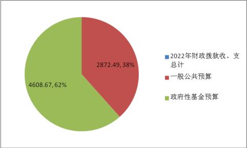 2022年本年收入合计7,481.15万元,其中:一般公共预算财政拨款收入2,872.49万元,占38.4%;政府性基金预算财政拨款收入4,608.67万元,占61.6%。