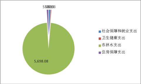 2022年一般公共预算财政拨款支出5,836.58万元,主要用于以下方面:社会保障和就业支出58.23万元,占1%;卫生健康支出22.93万元,占0.4%;农林水支出5,698.08万元,占97.6%;住房保障支出57.35万元,占1%。
