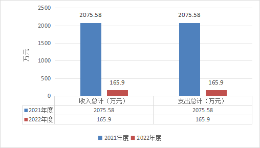 2022年度收、支总计165.9万元。与2021年相比,收、支总计减少1909.68万元,下降92.01%。主要变动原因是项目资金大量减少。