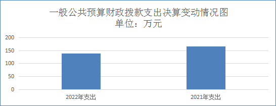 2022年一般公共预算财政拨款支出138.37 万元,占本年支出合计的100 %。与2021年相比,一般公共预算财政拨款支出减少27.98万元,下降16.80 %。主要变动原因是:压缩开支,厉行节约,文化旅游体育与传媒业务活动支出有所减少。