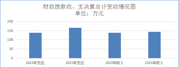 2022年度收入138.37万元、支出总计 138.37 万元。与2021年相比,收入减少5.02万元、支出总计减少27.98万元,收入下降 3.6%。支出下降16.8 %。主要变动原因是:压缩开支,厉行节约,文化旅游、体育与传媒业务活动支出有所减少。