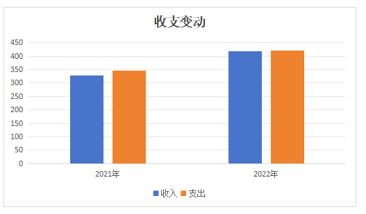 2022年度收入总计416.93万元。与2021年相比,收入支总计增加88.79万元,增长27.06%。主要变动原因是2022年业务收入增加及新冠疫情防控经费增加。2022年度支出总计421.31万元。与2021年相比,支出总计增加76.06万元,增长22.03%。主要变动原因是支付部分前期未支付款项、正常调资工资福利费增加及疫情防控期间各项费用增加。