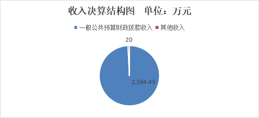 2022年本年收入合计2,584.43万元,其中:一般公共预算财政拨款收入2,564.43万元,占99.23%;其他收入20万元,占0.77%。