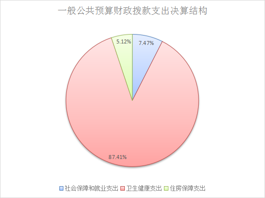 2022年一般公共预算财政拨款支出96.86万元,主要用于以下方面:社会保障和就业支出7.24万元,占7.47%;卫生健康支出84.66万元,占87.41%;住房保障支出4.96万元,占5.12%。