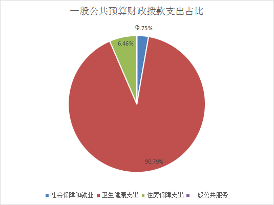 2022年一般公共预算财政拨款支出84.84万元,主要用于以下方面:社会保障和就业支出2.33万元,占2.75%;卫生健康支出77.03万元,占90.79%;住房保障支出5.48万元,占6.46%。