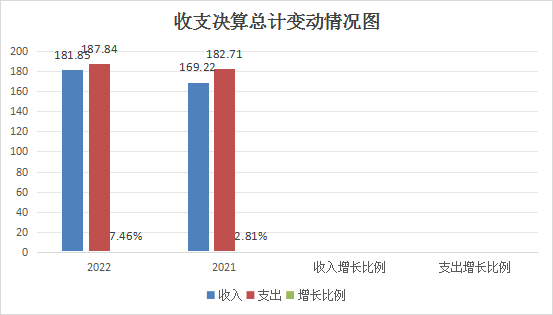 2022年度收入总计181.85万元、支出总计187.84总计万元。与2021年相比收入增长12.63万元,增长7.46%,支出增长5.13万元,增长2.81%。主要变动原因是医疗业务收入增加,总收入增加业务成本支出同时增加;正常人员调资财政补助有增加、支出人员经费同时增加。
