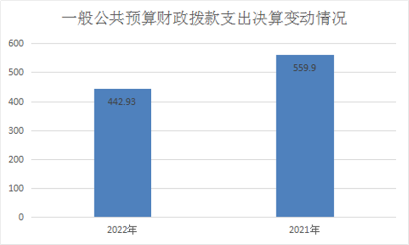 2022年一般公共预算财政拨款支出442.93万元,占本年支出合计的100%。与2021年相比,一般公共预算财政拨款支出减少116.97万元,下降20.89%。主要变动原因是人员调出人员经费减少,日常公用开支减少。
