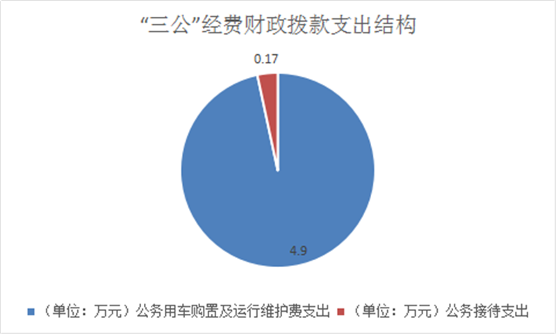 2022年“三公”经费财政拨款支出决算中,因公出国(境)费支出决算0万元,年初未安排预算;公务用车购置及运行维护费支出决算4.90万元,占96.65%;公务接待费支出决算0.17万元,占3.35%。具体情况如下: