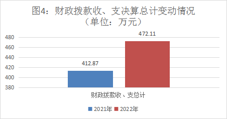 2022年财政拨款收、支总计472.11万元。与2021年相比,财政拨款收、支总计各增加59.24万元,增长14.35%。主要变动原因是人员新增和经费标准提高。