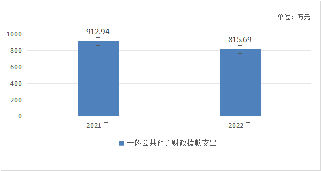 2022年一般公共预算财政拨款支出815.69万元,占本年支出合计的100%。与2021年相比,一般公共预算财政拨款支出减少97.25万元,下降10.65%。主要变动原因是按照有关要求,树立过“紧日子”和坚持厉行节约反对浪费意识,强化内部管理,进一步压减费用支出。