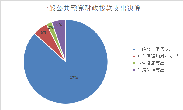 2022年一般公共预算财政拨款支出815.69万元,主要用于以下方面:一般公共服务支出707.54万元,占86.74%;社会保障和就业支出46.65万元,占5.72%;卫生健康支出17.77万元,占2.18%;住房保障支出43.73万元,占5.36%。
