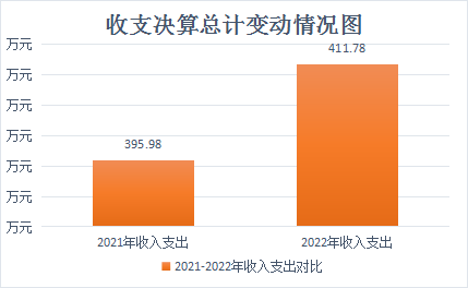 2022年财政拨款收、支总计411.78万元。与2021年相比,财政拨款收、支总计各增加15.8万元,上升3.99%。主要变动原因是人员增加3名,工资性收入与支出增加。