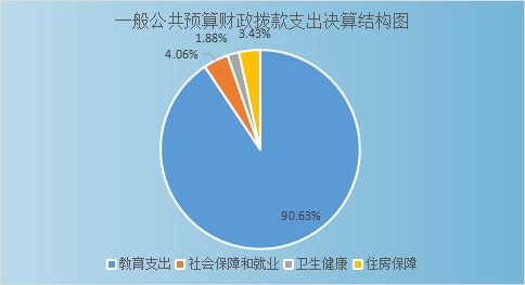 2022年一般公共预算财政拨款支出411.78万元,主要用于以下方面:教育支出373.19万元,占90.63%;社会保障和就业支出16.7万元,占4.06%;卫生健康支出7.76万元,占1.88%;住房保障支出14.13万元,占3.43%。