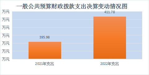 2022年一般公共预算财政拨款支出411.78万元,占本年支出合计的100%。与2021年相比,一般公共预算财政拨款支出增加15.8万元,上升3.99%。主要变动原因是人员增加3名,工资性支出增加。