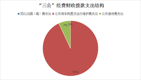 2022年“三公”经费财政拨款支出决算中,因公出国(境)费支出决算0万元,占0%;公务用车购置及运行维护费支出决算12.95万元,占93.03%;公务接待费支出决算0.97万元,占6.97%。具体情况如下: