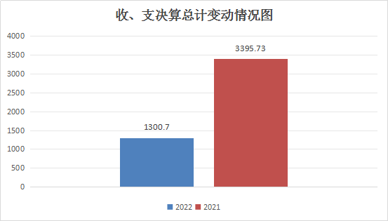 2022年度收、支总计1300.70万元。与2021年相比,收、支总计各减少2095.03万元,下降38.30%。主要变动原因是项目减少。