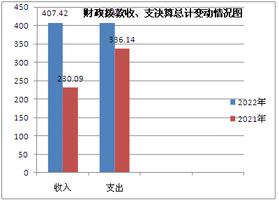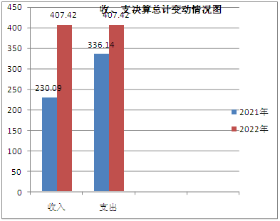 2022年度收入合计407.42万元、支出合计407.42万元,与2021年收入230.09万元、支出336.14万元相比,收入总计增加177.33万元、支出总计增加71.28万元,收入总计增加了77.07%,支出总计增加了21.21%。变动的主要原因是增加了县级储备粮油利费补贴,退休人员抚恤金、丧葬费,在职人员2022年调资及退休人员独生子女一次性补贴等支出。