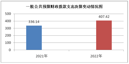 2022年一般公共预算财政拨款支出407.42万元,占本年支出合计的100%。与2021年336.14万元相比,一般公共预算财政拨款增加71.27万元,增加了21.21%。变动的主要原因是增加了县级储备粮油利费补贴,退休人员抚恤金、丧葬费,在职人员调资及退休人员独生子女一次性补贴等支出