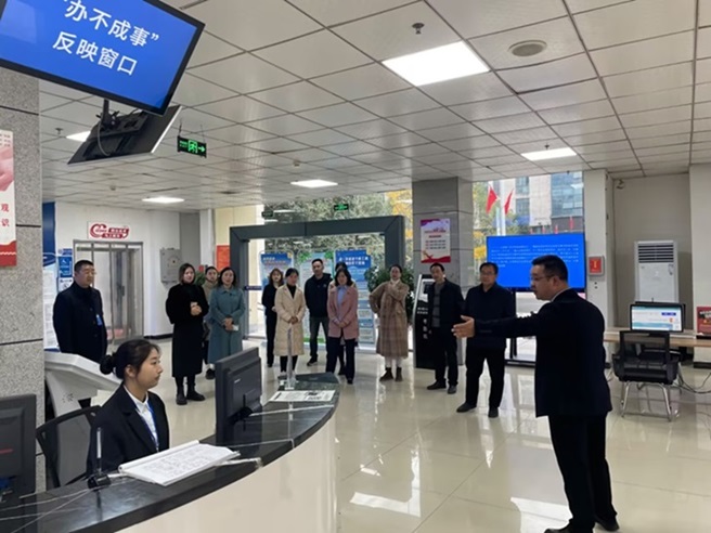 本次活动分为两个阶段,第一个阶段是现场观摩政务服务大厅各窗口运行情况,通过听取首席代表汇报、询问现场办事群众,了解无差别综窗(“跨域通办”、一件事一次办)、企业开办、税务、工程建设项目审批、不动产登记、住房公积金等窗口事项办理流程情况,12345接线、办理情况,营商环境举报窗口工作开展情况。