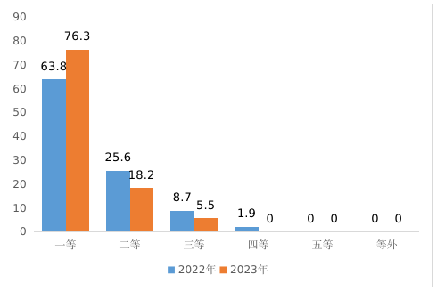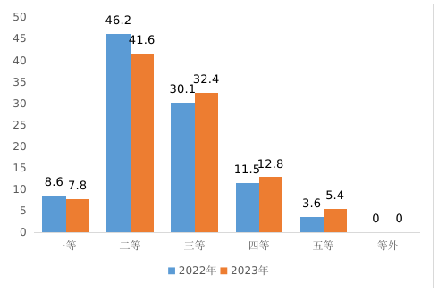 图2 2022-2023年新收获油菜籽等级分布比较图