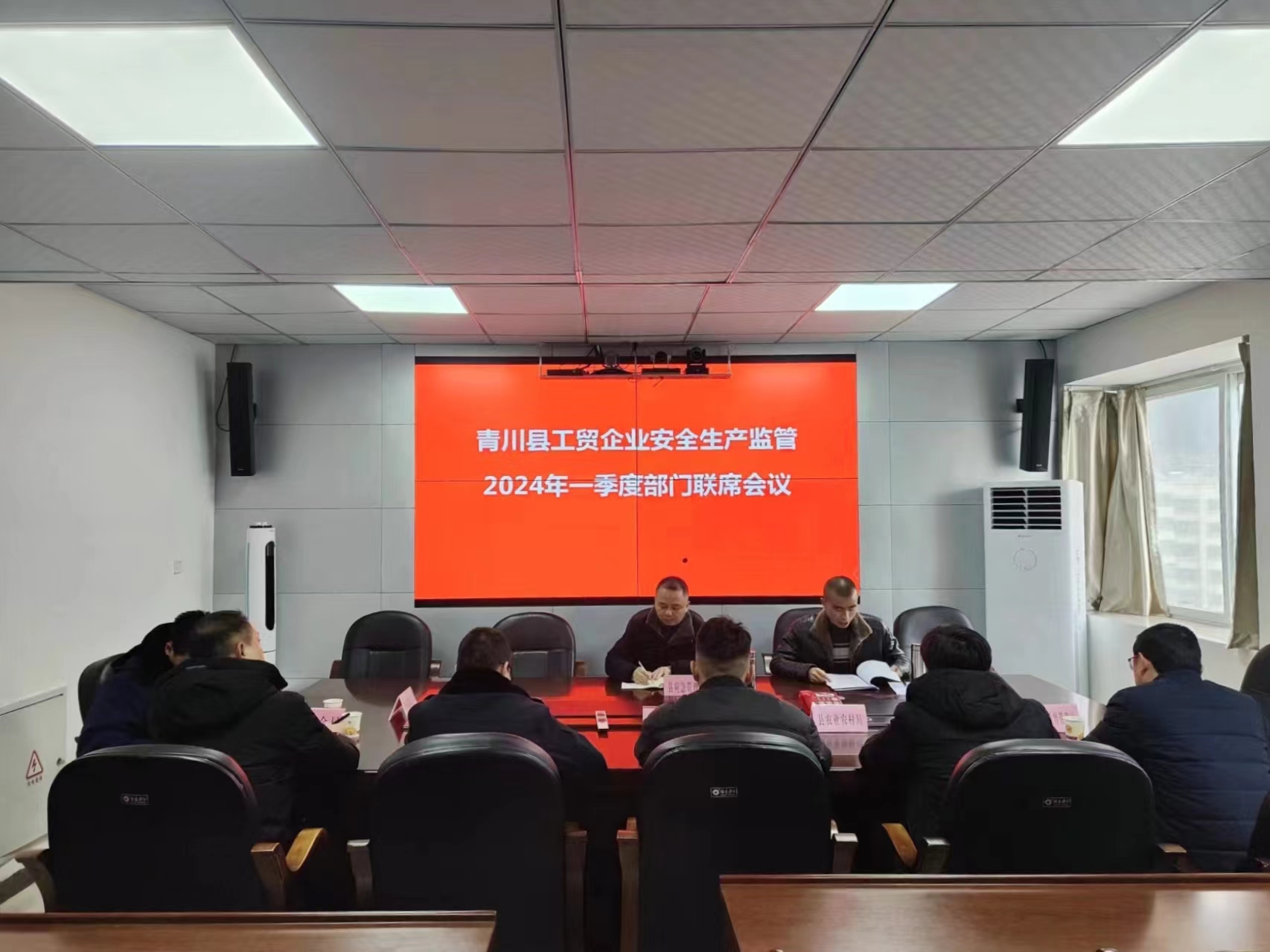 为贯彻落实全市应急管理工作会议精神,深入推动青川县工贸企业安全生产监管工作落地落实,1月31日,县应急管理局牵头,组织县经科局、县商务局、县市场监管局、县住建局、县农业农村局、县消防救援大队,召开了工贸企业安全生产监管2024年一季度部门联席会。