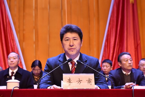 大会主席团常务主席、闭幕会执行主席李方甫讲话。大会主席团常务主席、闭幕会执行主席张国辉主持闭幕会。大会主席团常务主席、闭幕会执行主席李磊、阳建华、张利民、向国宏、张祥玮在主席台前排就座。