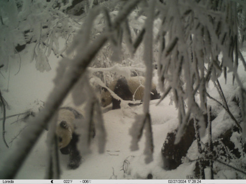 该红外相机安装在大白包区域海拔约2700米处,从相机拍摄的数据中显示,仅2024年2月就多次记录到该大熊猫活动场景。画面中,大熊猫母子体态圆润,行动敏捷,展现出其健康的生活状态。经工作人员分析,此次记录的成年大熊猫与2023年拍摄的为同一只,不同的是这一次增添了一名新成员。连续三年记录到野生大熊猫在此区域活动,不仅表明该区域经过栖息地修复等有效保护措施已经是大熊猫的适宜栖息地,也表明唐家河的野生大熊猫种群在不断繁衍扩大。
