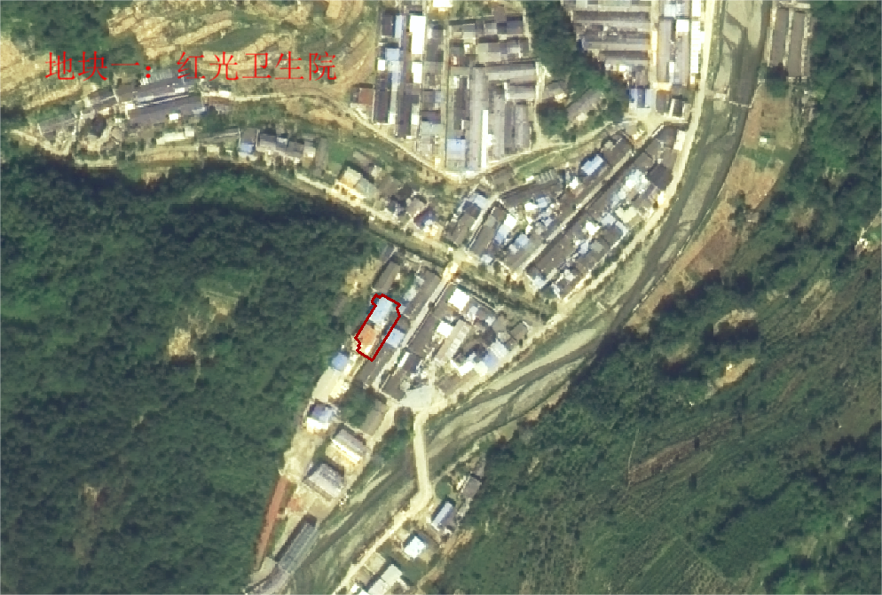 (红光卫生院)地块一位于关庄镇红光社区,四周东至田仕斌、岳永继、岳云先房屋,南至王义邦房屋,西至岳永华林地,北至原养老院,面积为851.24㎡,经实地踏勘调查并经关庄镇红光社区核实,该地块为原红光卫生院用地,于80年代迁建于此,灾后原址重建,为国有土地,与村集体无权属争议。