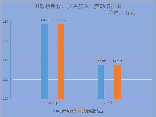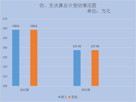 2022年度收、支总计158.60万元。与2021年相比,收、支总计各增加21.15万元,增长15.39%。主要变动原因是本年增加运转类项目经费。