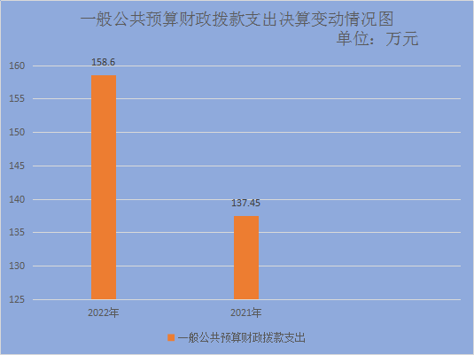 2022年一般公共预算财政拨款支出158.60万元,占本年支出合计的100%。与2021年相比,一般公共预算财政拨款支出增加21.15万元,增长15.39%。主要变动原因是本年运转类项目经费支出增加。