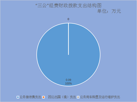 2022年“三公”经费财政拨款支出决算中,因公出国(境)费支出决算0万元,占0%;公务用车购置及运行维护费支出决算0万元,占0%;公务接待费支出决算0.09万元,占100%。具体情况如下: