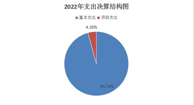 2022年本年支出合计1246.98万元,其中:基本支出1193.87万元,占95.74%;项目支出53.11万元,占4.26%;上缴上级支出0元;经营支出0元;对附属单位补助支出0元。