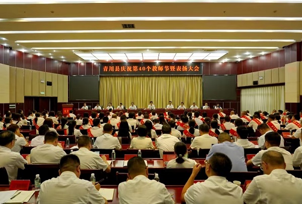 9月10日,青川县庆祝第40个教师节暨表扬大会在行政中心召开。表扬2023至2024学年度教育质量突出单位和优秀个人,激励全县广大教师和教育工作者,躬耕教坛、无私奉献、勇争一流,推动全县教育事业再上新台阶、再创新辉煌。县委书记李方甫出席会议并讲话,县人大常委会主任张国辉出席会议,县委副书记李磊主持会议,县委副书记李毅出席会议。