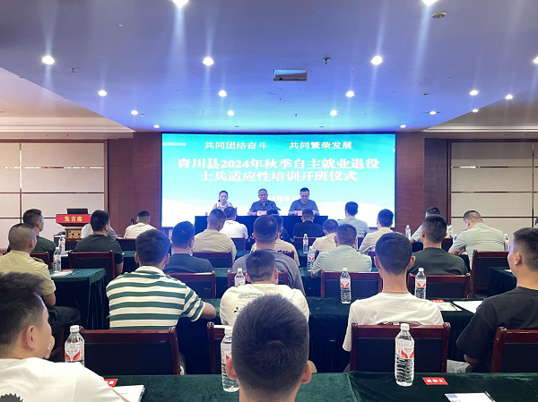 为帮助退役军人尽快适应地方社会发展,更好地完成角色转变,9月23日上午,青川县2024年度秋季自主就业退役士兵适应性培训班正式开班。全县40余名自主就业退役士兵参训。县退役军人事务局党组副书记、副局长文东,县退役军人服务中心,权益维护股负责同志参加开班仪式。